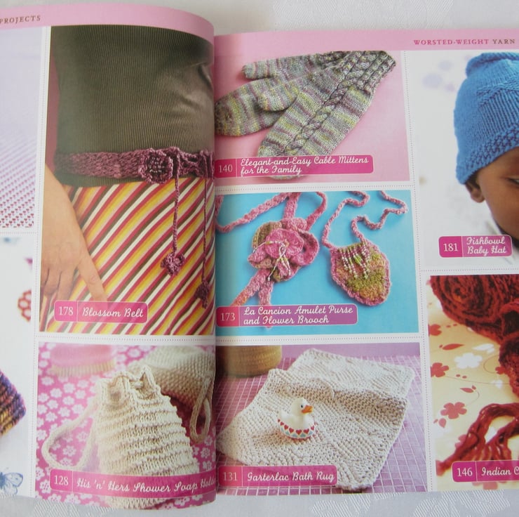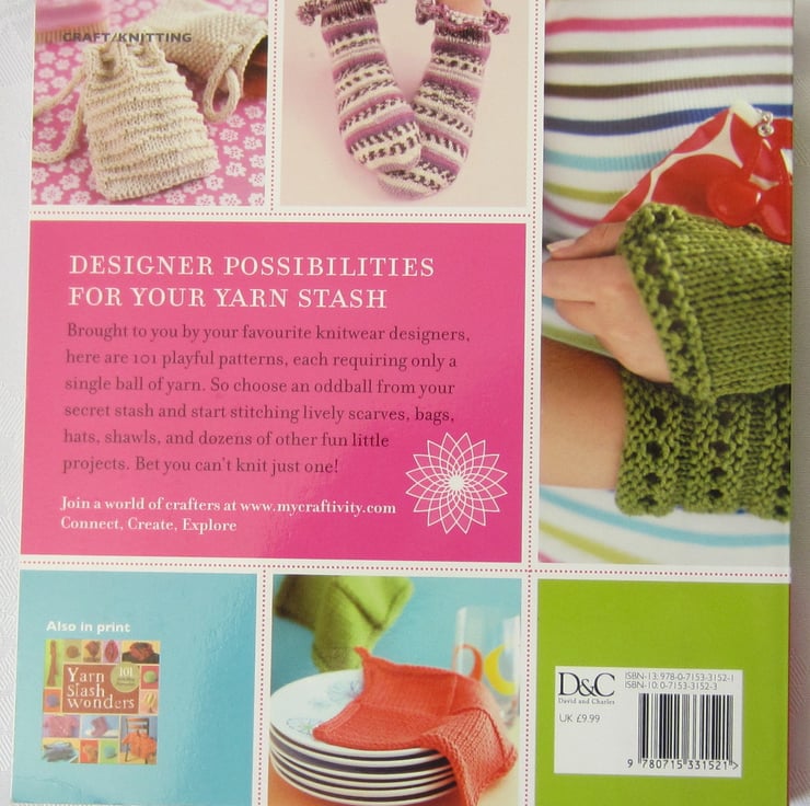 255 page book full of lots of knitting patterns using only 1 skein of yarn. Projects include scarves, hats, socks, purses, jewellery, mittens and toys