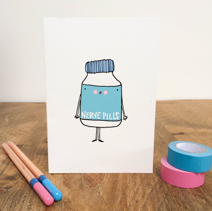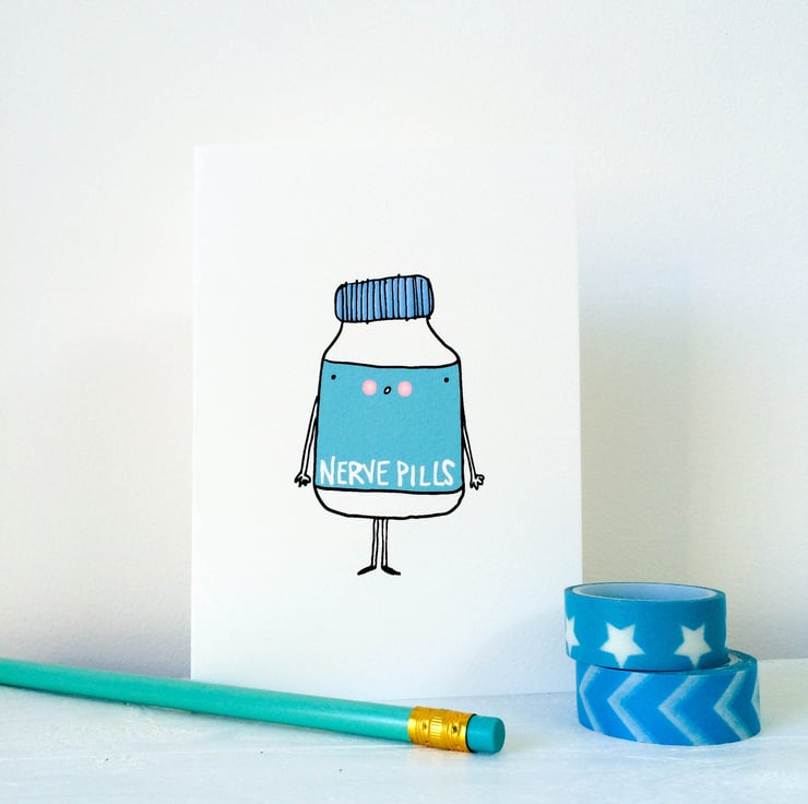 Sometimes we all get nervous and anxious whether its worrying about life in general or gearing up for a big event, nerve pills was designed as a little reminder to keep calm and stay focused!