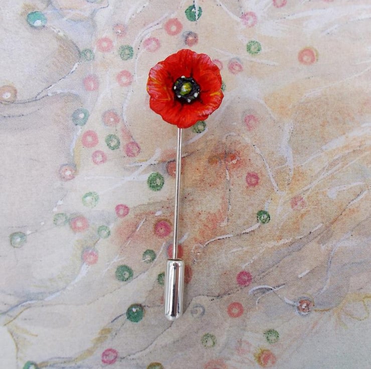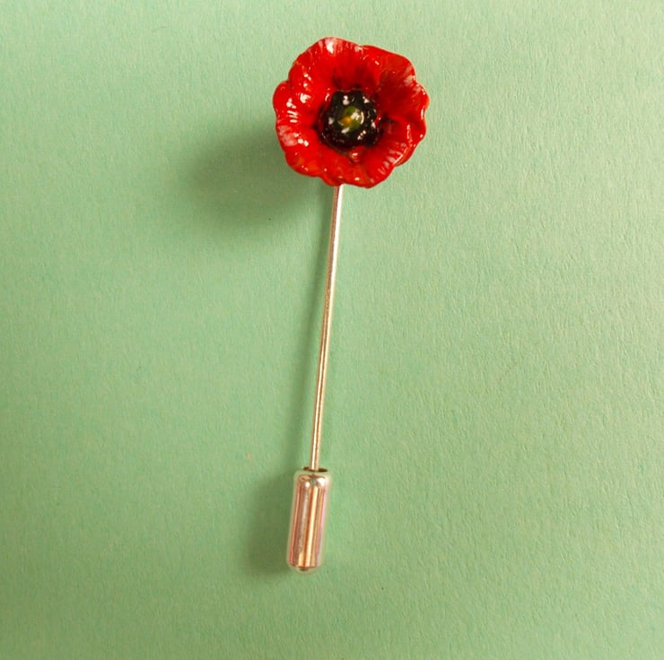 The Tiny Red FIELD POPPY STICK PIN- Lapel Flower Pin.