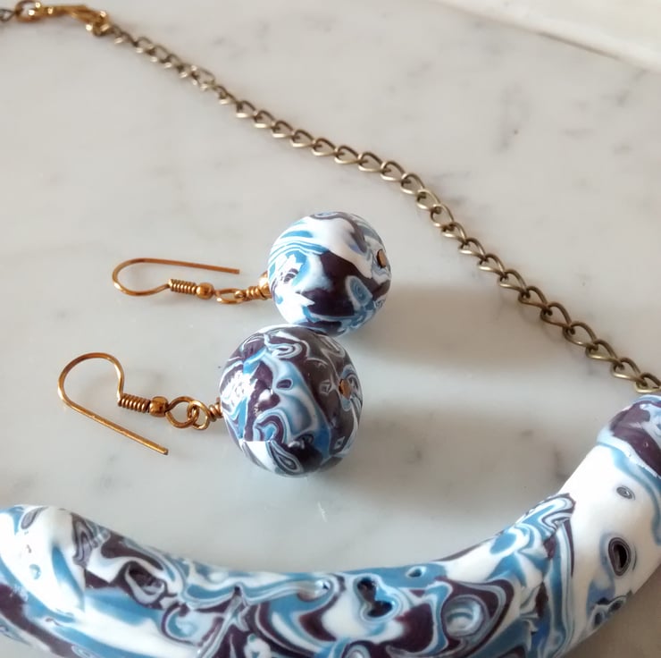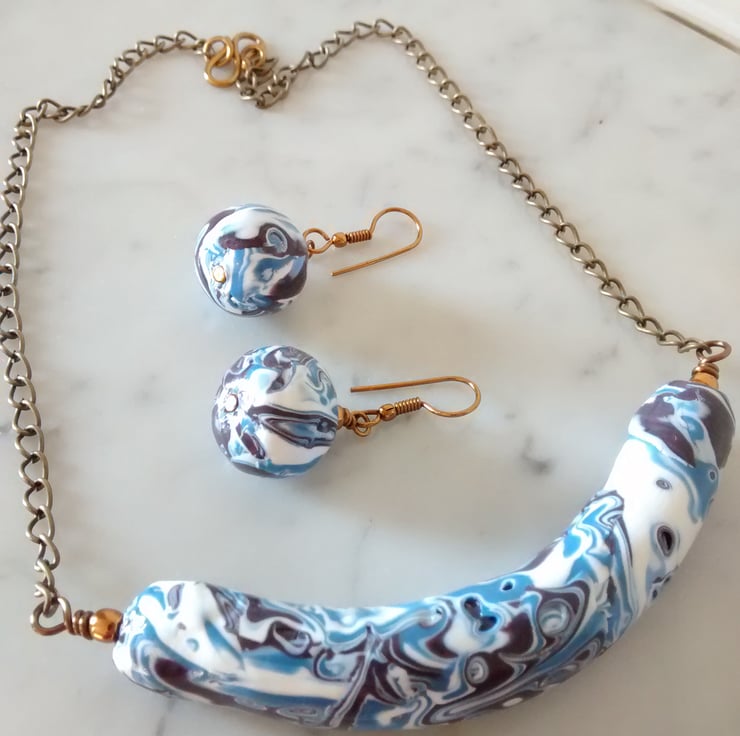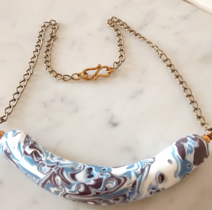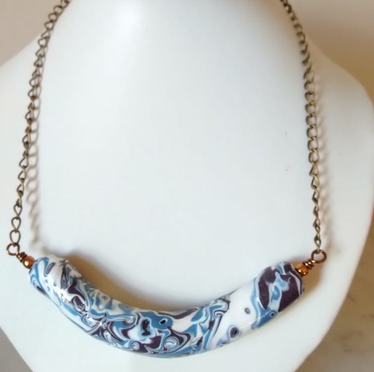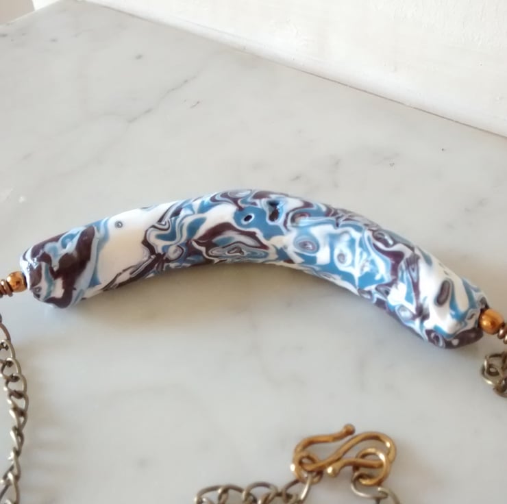 Here we have a nice long polymer clay bead Appro 4" in nice shades of blue.