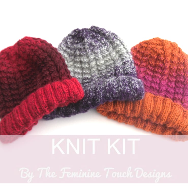 Knitting kit to knit your very own cable beanie hat to fit an adult.