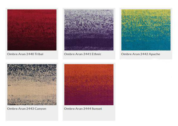 100 gram ball of StyleCrafts Ombre Aran (78% Acrylic, 22% Wool).