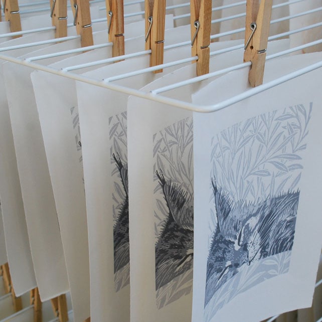 Making art through the medium of lino is one where surprises are a daily occurrence. Every time an image is hand pressed the anticipation of the reveal when pulling back the paper can make for some wonderful, unique images. The weight of the press, amount of ink and paper used means every single print is different, such a refreshing change in this digital age.