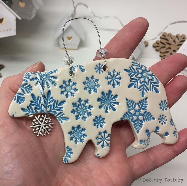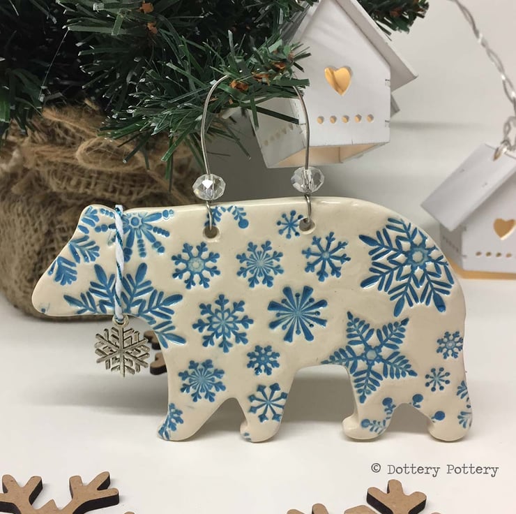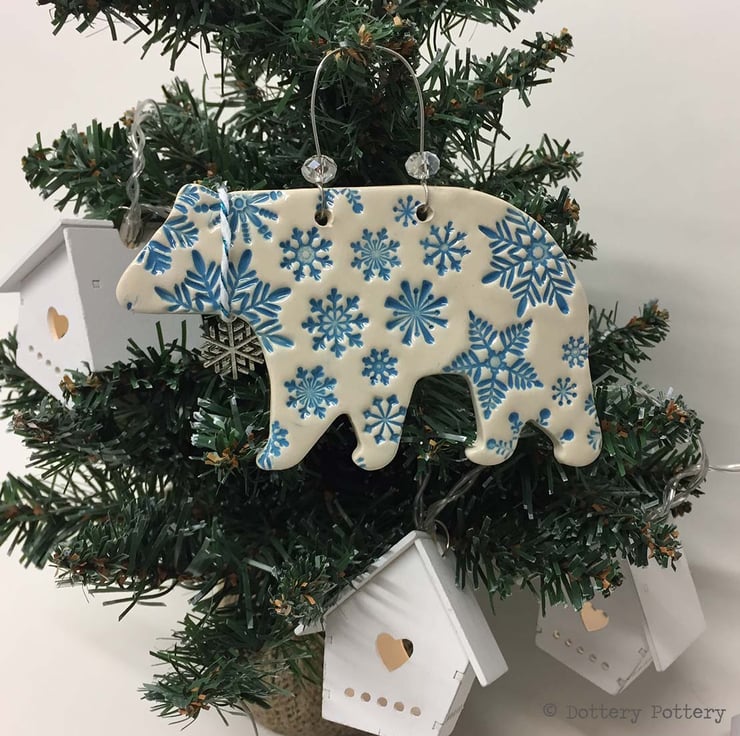 This cute Christmas themed Polar bear is made from white earthenware clay and decorated with pattern.