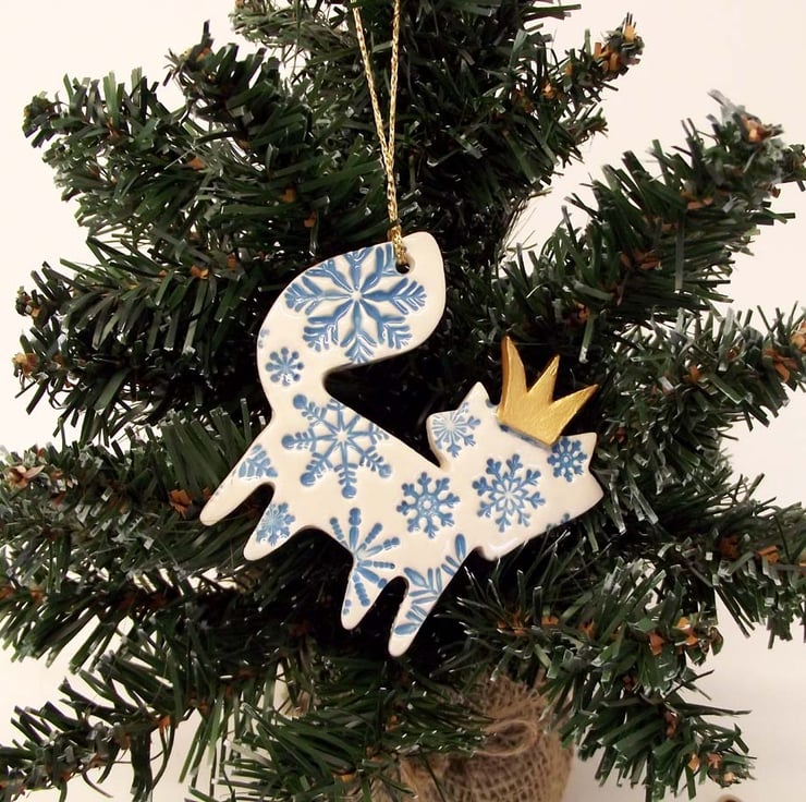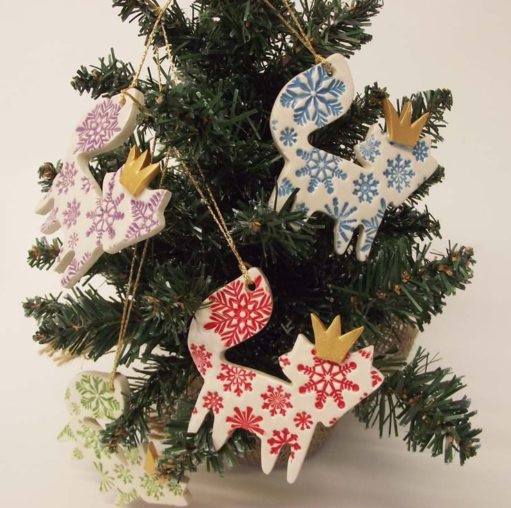 These cute little foxes are made from white earthenware clay - embossed with pattern and finished with a golden crown.