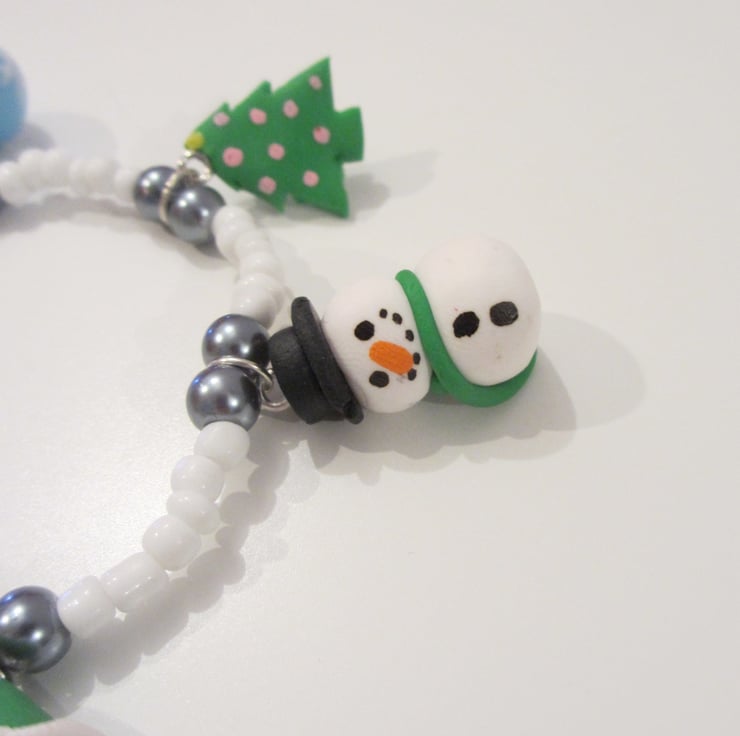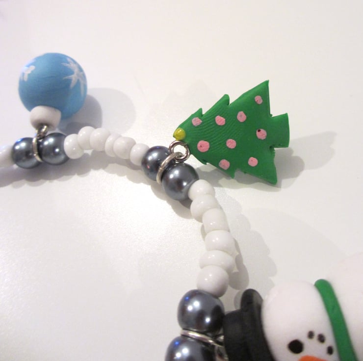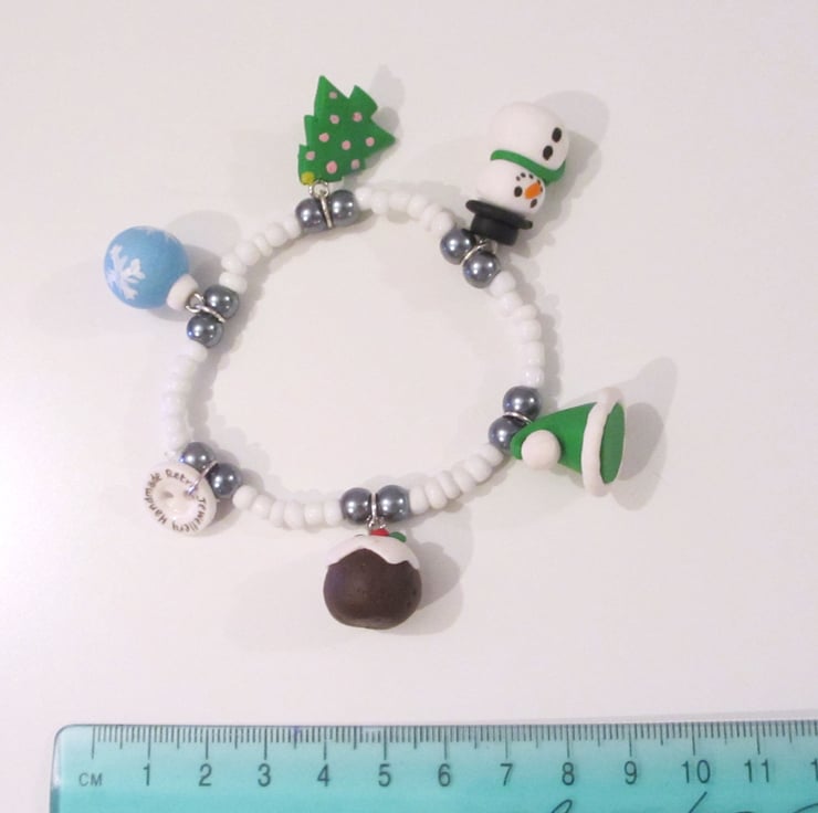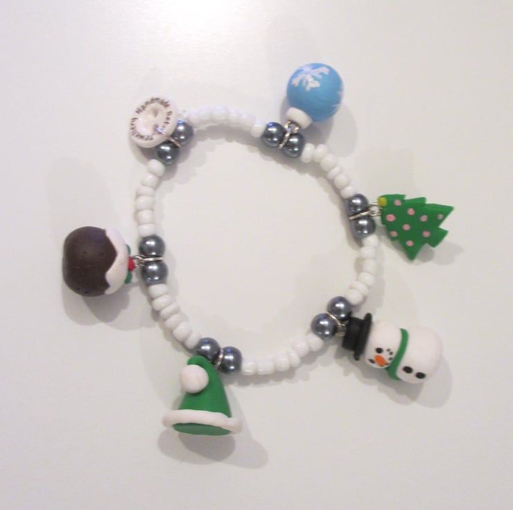 A festive Christmas themed charm bracelet, complete with five festive charms! These include a snowman, christmas tree, elf hat, bauble and Christmas pudding!