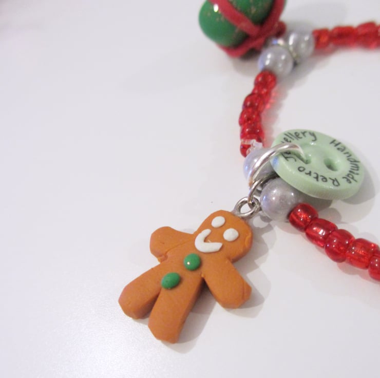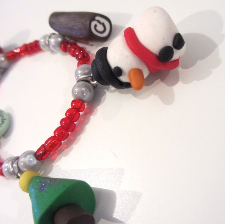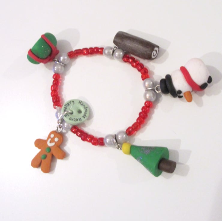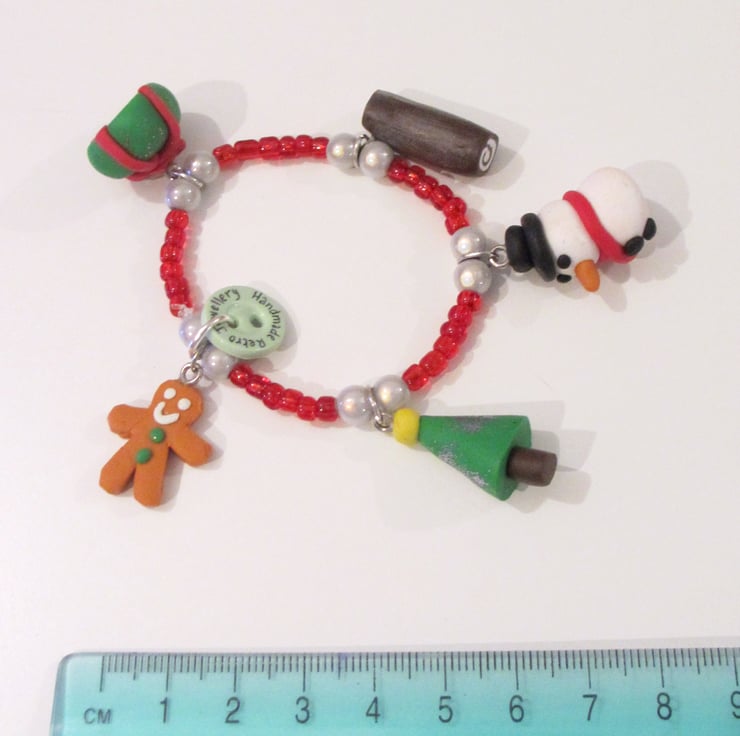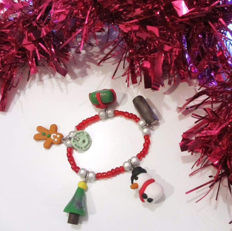 A festive Christmas themed charm bracelet, complete with five festive charms! These include a snowman, gingerbread man, Christmas tree, yule log and present!