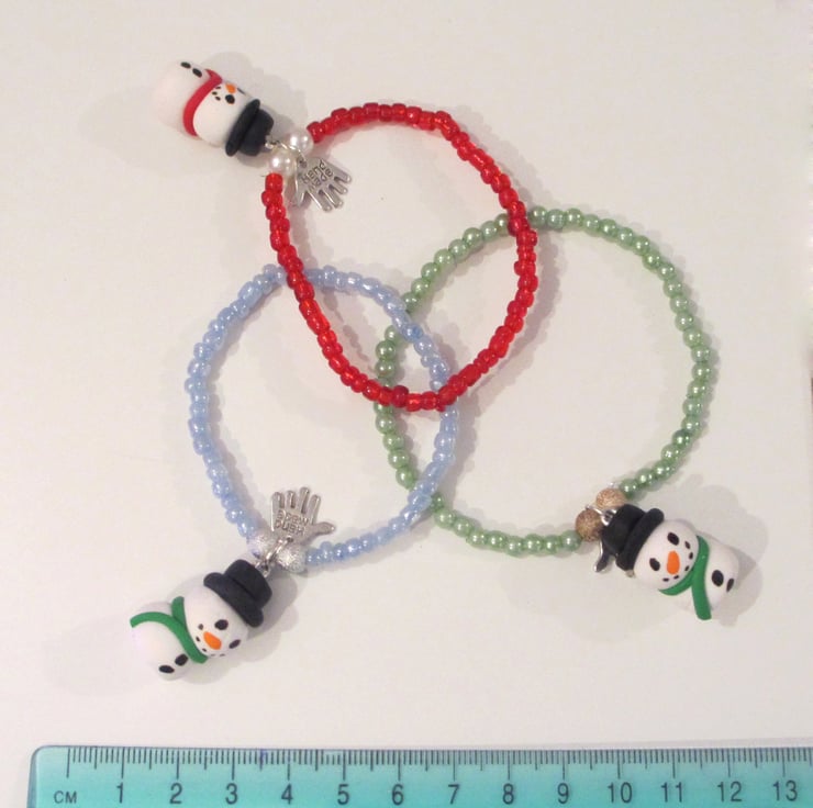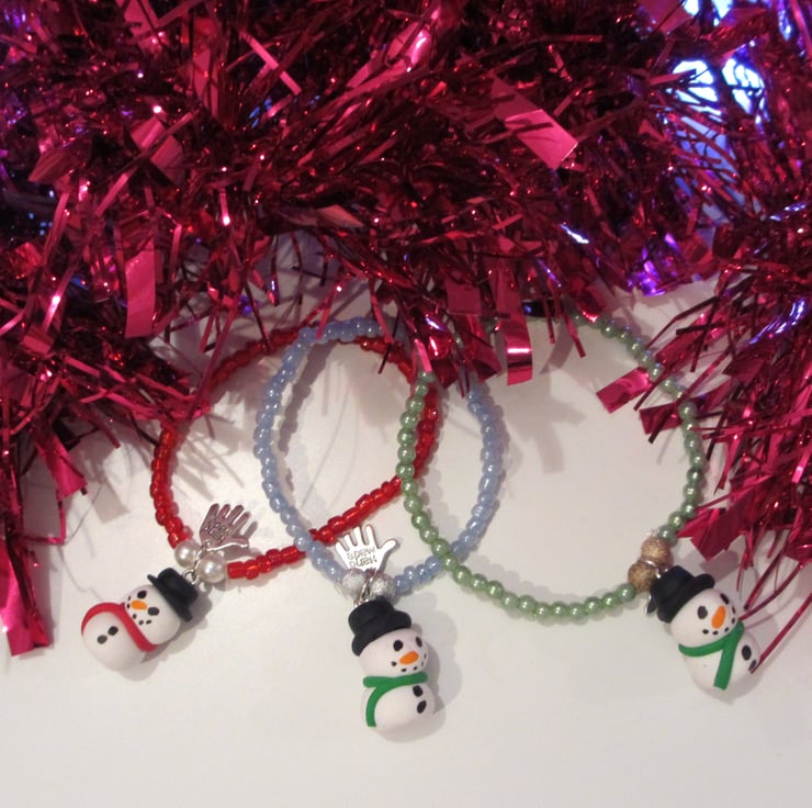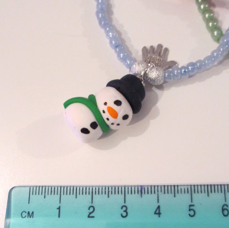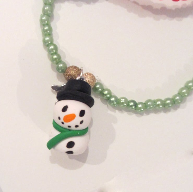 A festive Christmas themed charm bracelet, complete with a snowman winter charm! one left, with mint green beads.