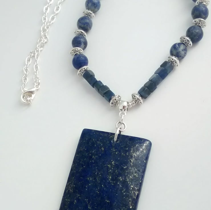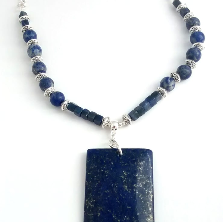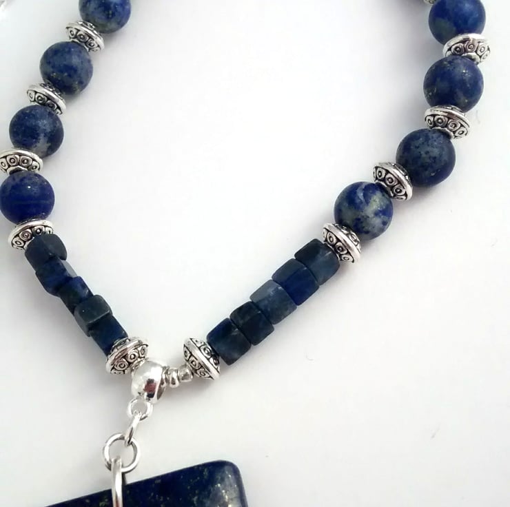 Stunning Lapis Lazuli Pendant on Beaded Necklace