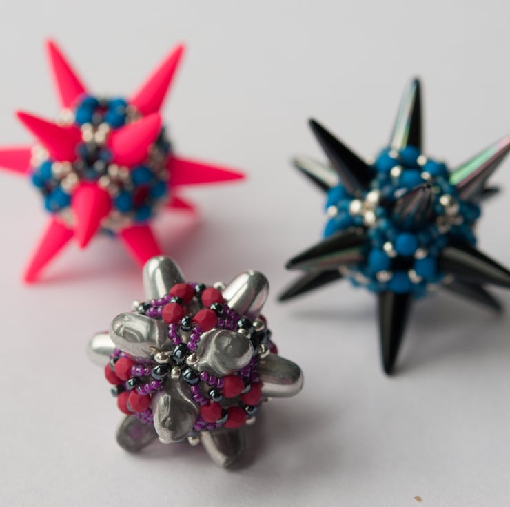 All of the beads you need to make one of my Great Balls of Spikes beaded beads or pendants. The pack includes Czech Spike Beads; Miyuki seed beads in a variety of sizes and Czech fire polished beads.