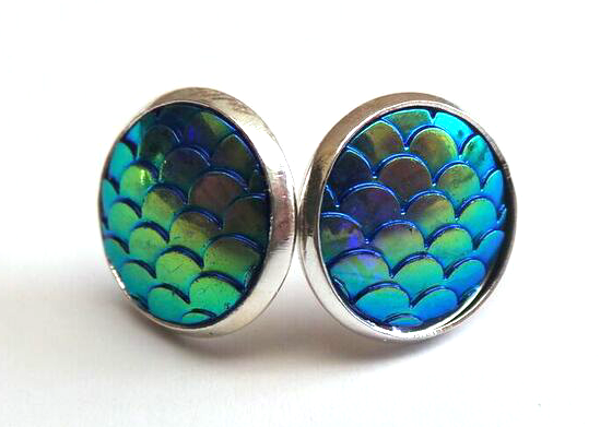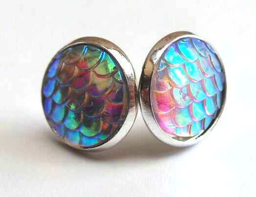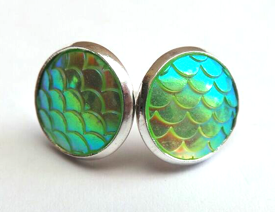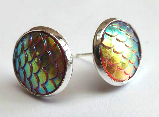 Gorgeous resin Mermaid Scale silver plated Earrings