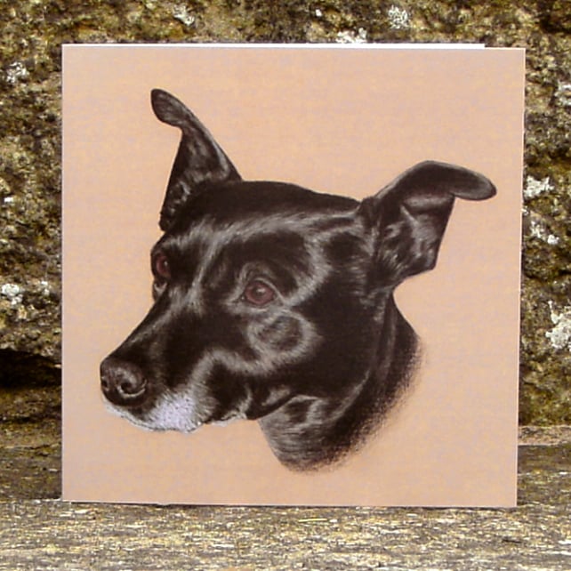 ‘Gemma the Little Black Dog’ - This card is a reproduction of one of my original coloured pencil drawings. One of a series of canine portraits, this little dog is a steady and loving friend.