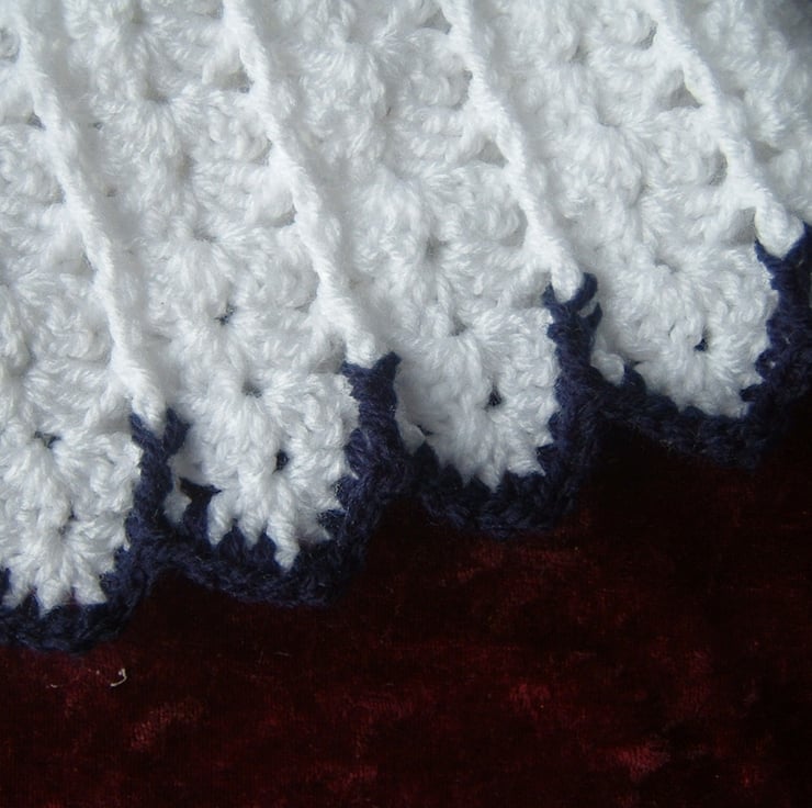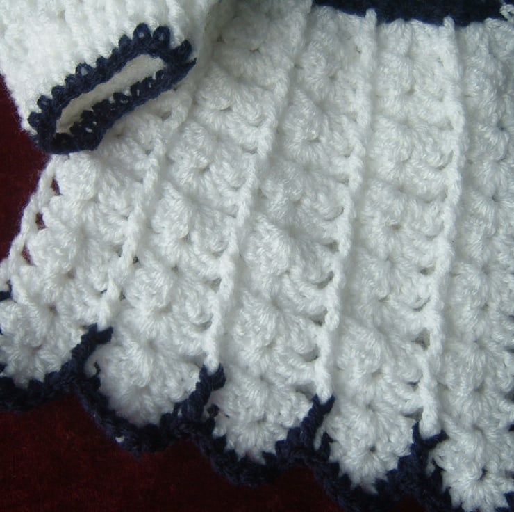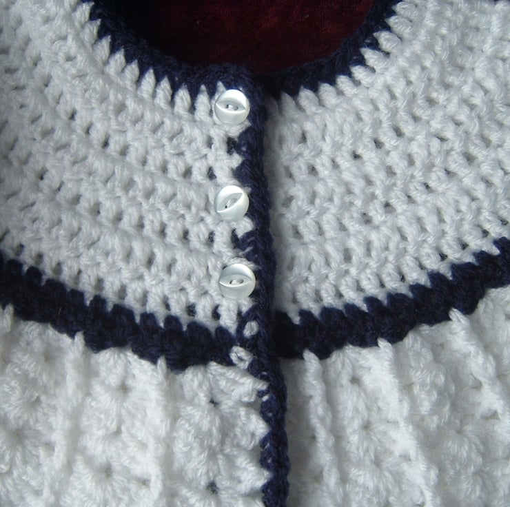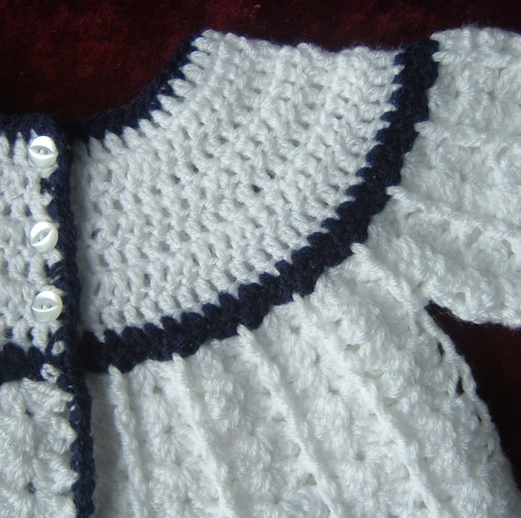 Made from quality acrylic yarn in navy and white, to fit newborn babies.