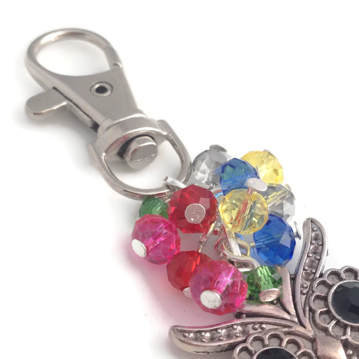 The chain is hanging from a silver coloured metal swivel lobster claw clasp that means this charm can be easily attached to your favourite bag.