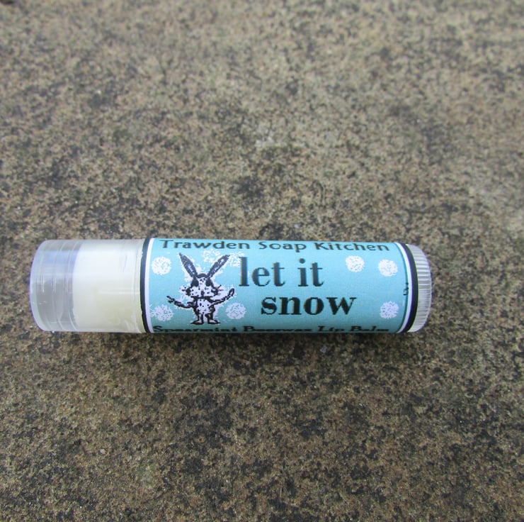 I'm proud of my beeswax lip balms. This is packaged for Winter / this festive period "Let it Snow".