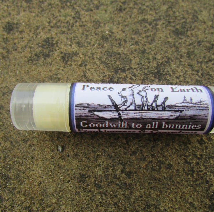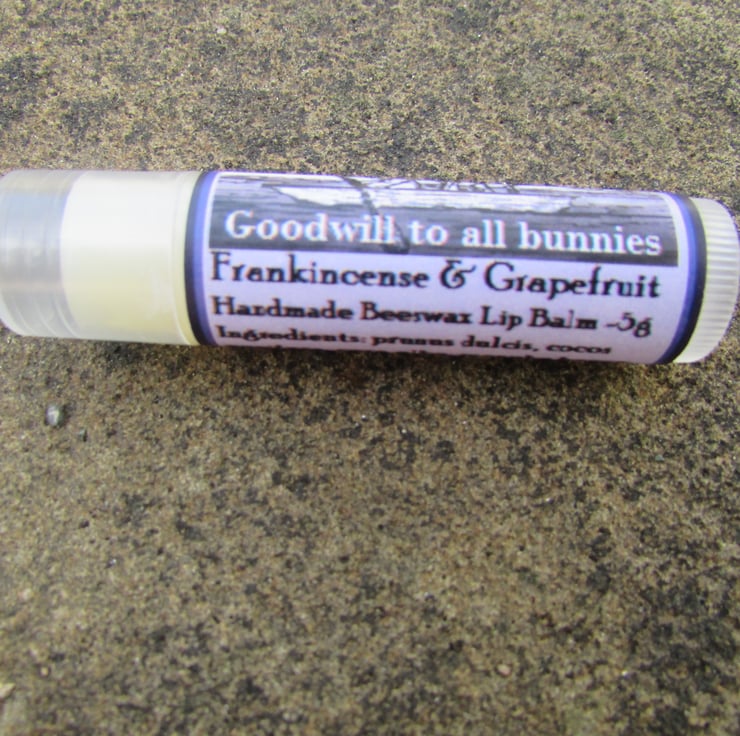 A lovely lightly fragrant beeswax lip balm, with tiny quantities of frankincense and grapefruit essential oil. Here we have the festive variation of my best selling Zen Bunny lip balm.