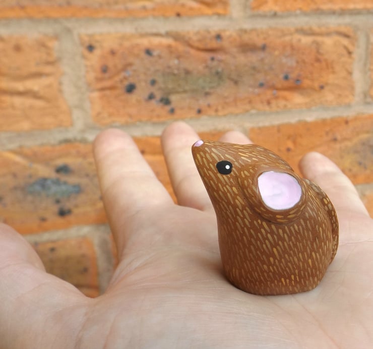 I design and sculpt each and everyone of my figures and miniatures. The Mouse is cast in resin and has then been hand painted using high quality acrylics and given a coat of protective varnish.