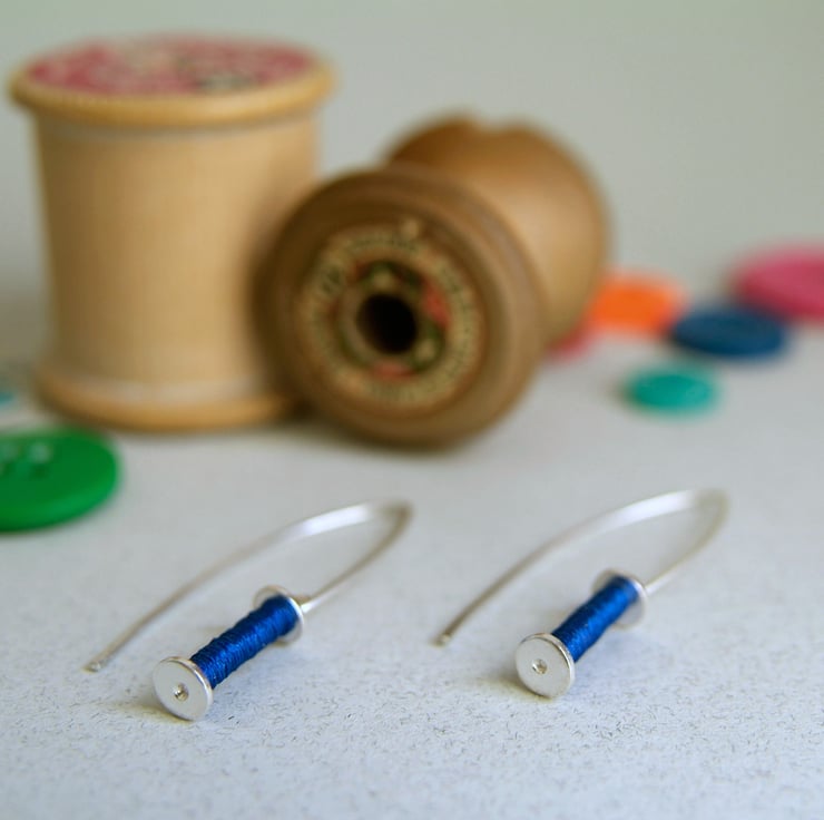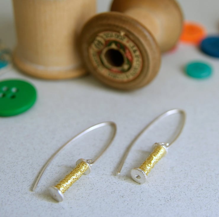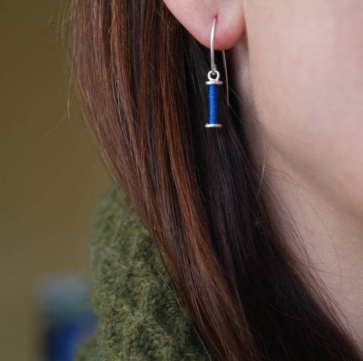 These cotton reel drop earrings are the perfect seamstress gift or for a cotton anniversary (2 years marriage!).