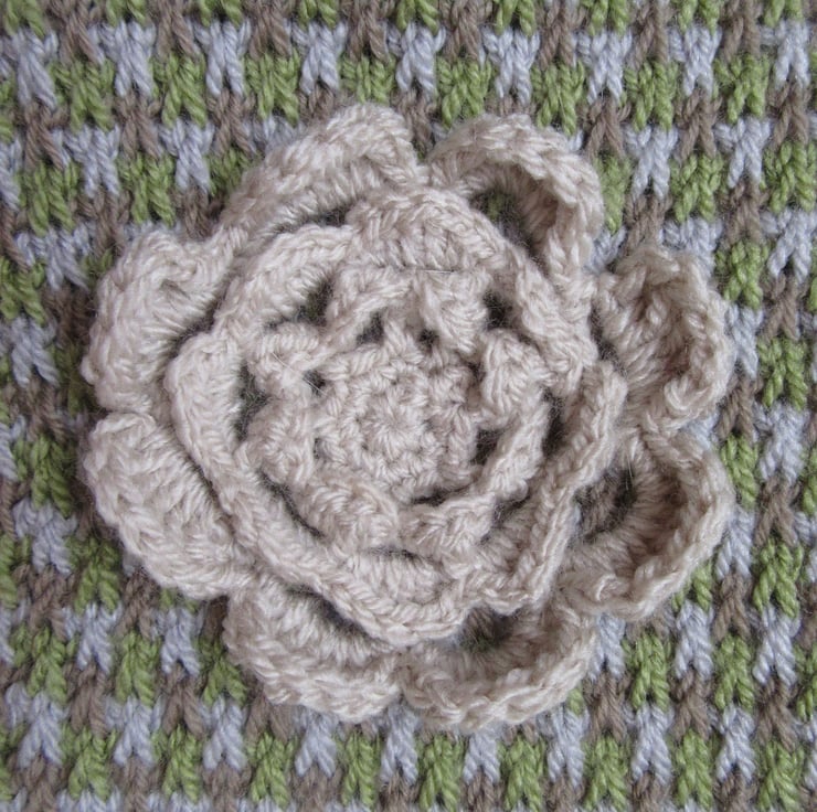I have crocheted a flower for the front in a pale fudge coloured yarn.
