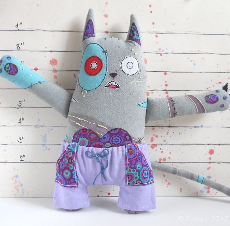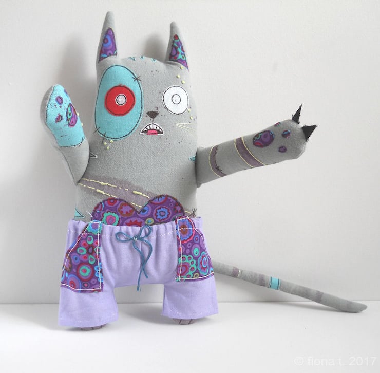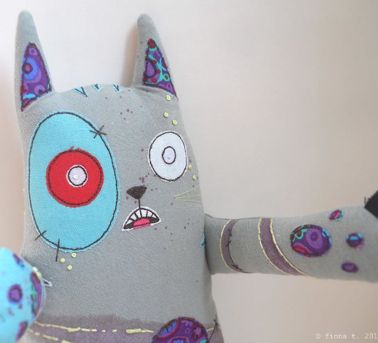 the cats themselves have been made entirely on a domestic sewing machine, everything is cut, stitched & drawn freehand by me.