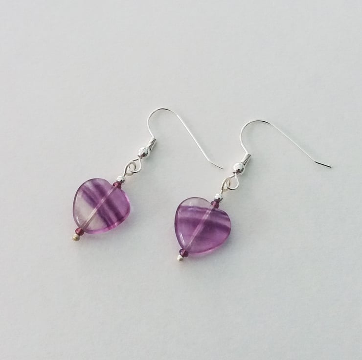 These earrings are made from 12 mm Rainbow Fluorite Heart Beads and silver plated beads and other jewellery making components.