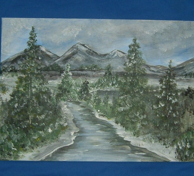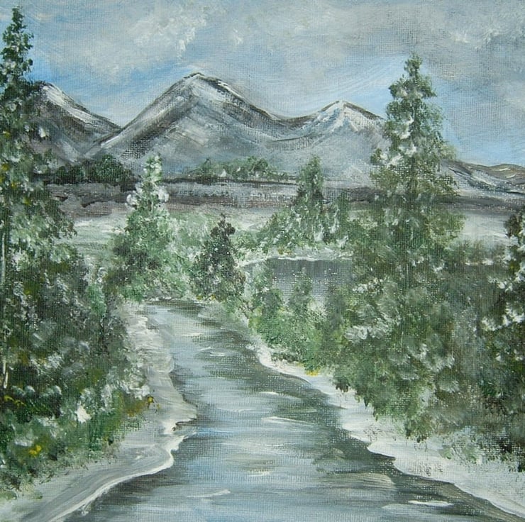 Painted in acrylic paints on solid canvas board it measures appproximately 10" x 14" and is unframed.