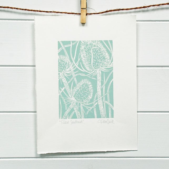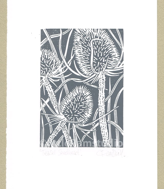 New series of three seedheads. Hand cut and printed on hand press, available in duck egg blue or charcoal ink. Titled and signed in pencil by the artist.