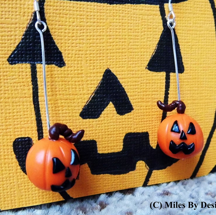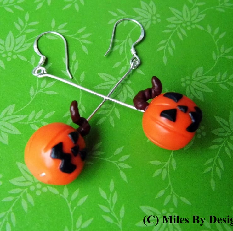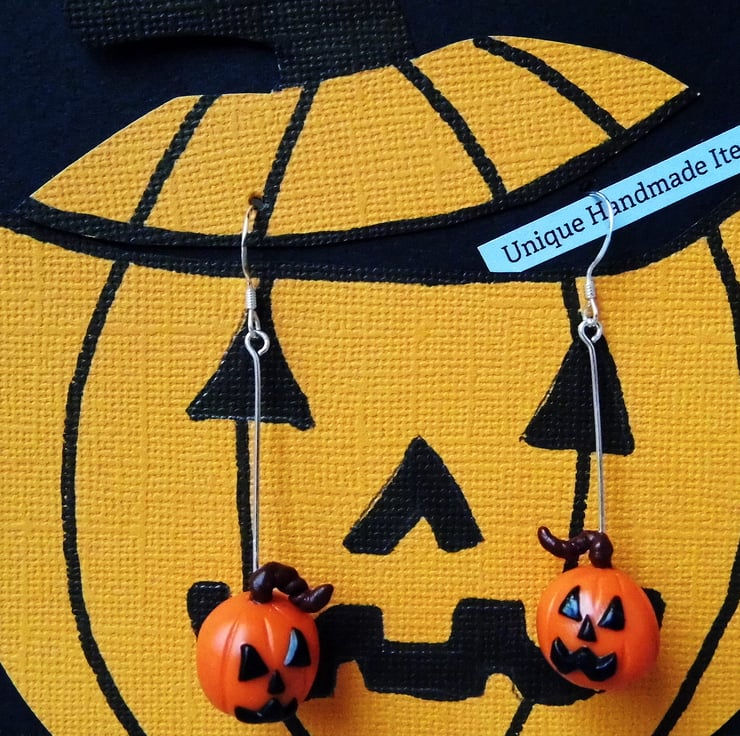 These cute and quirky handmade polymer clay pumpkin earrings on sterling silver ear hooks would make a fantastic gift for a friend or yourself this year. They come presented on a handmade pumpkin card within a cellophane packet.