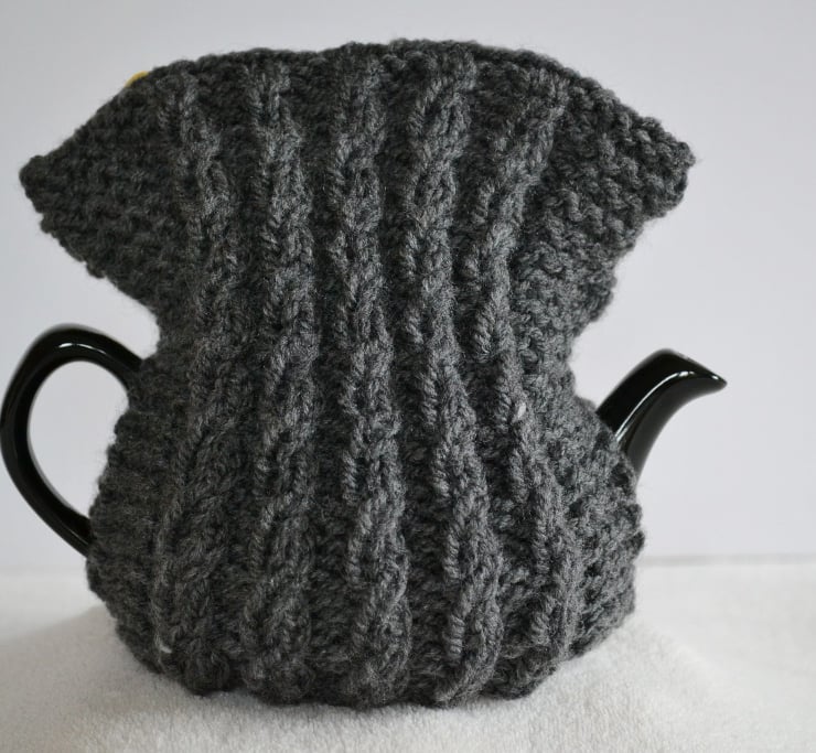 Hand knitted in a dark grey. Made in an Aran yarn in a lovely mock cable pattern to one of my own created patterns.