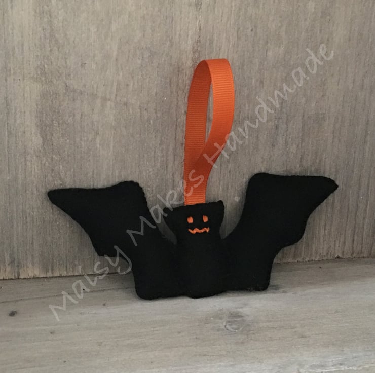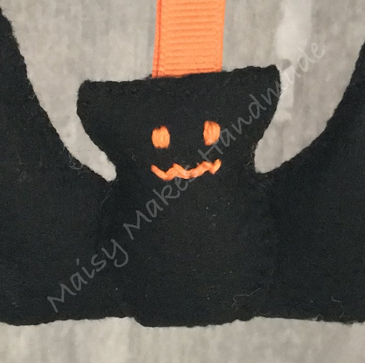 This Boris Bat Halloween Hanging Decoration has been handmade, from my original hand drawn design and is made from 100% wool felt and has a grosgrain ribbon attached for ease of hanging. This item has been entirely cut by hand and all stitching and embroidery is also completed by hand.