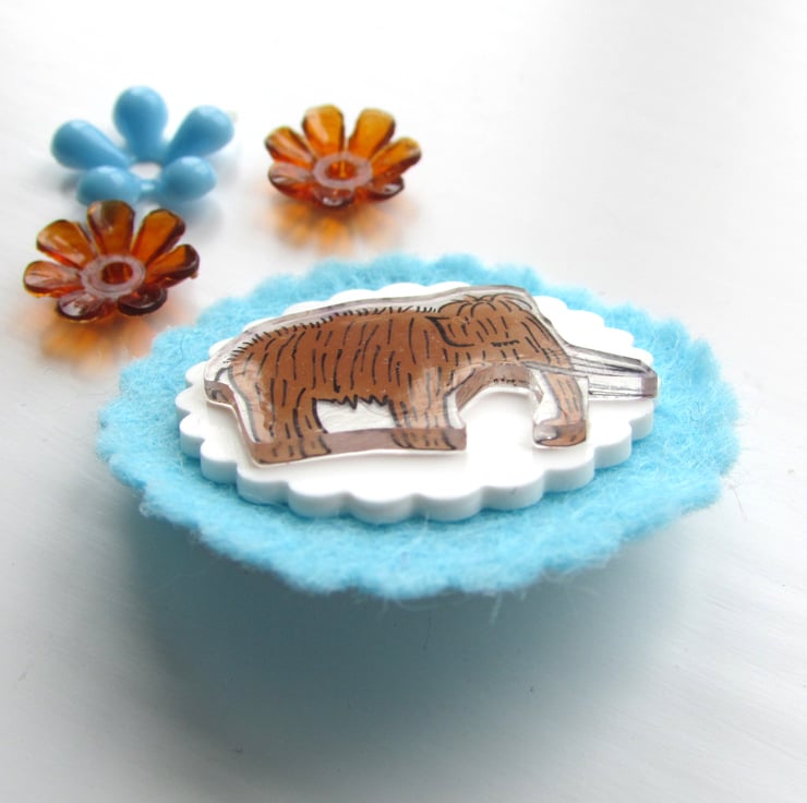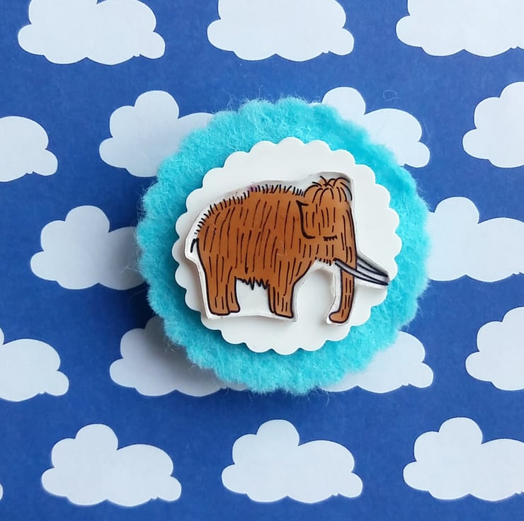 This woolly mammoth, martin, is a mini mammoth, small enough to fit on a cardi or jumper.