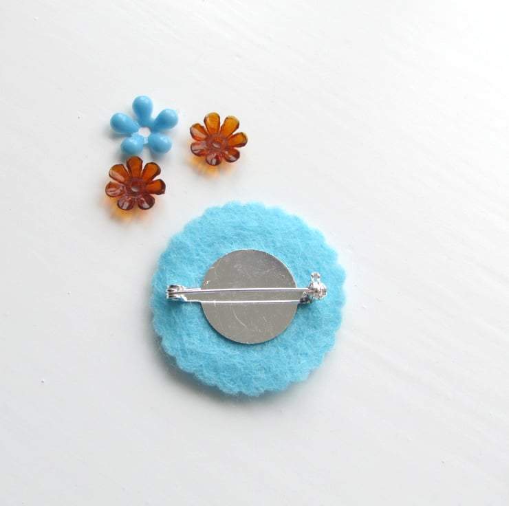 The brooch is made from layers of shrink plastic and felt with a safety brooch back. The image has been hand painted.