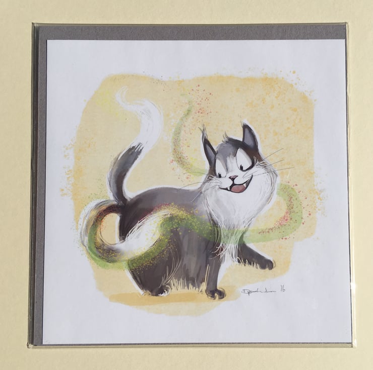 The print comes backed on greyboard, in a cellophane envelope for protection. Signed on the front.