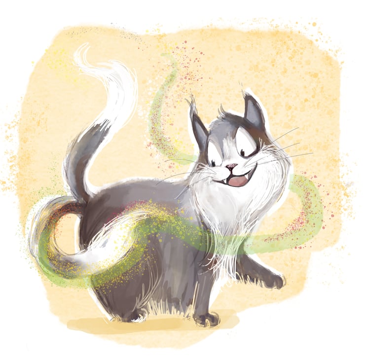 A Giclee print of an illustration of a Nekomata, Japanese yokai.