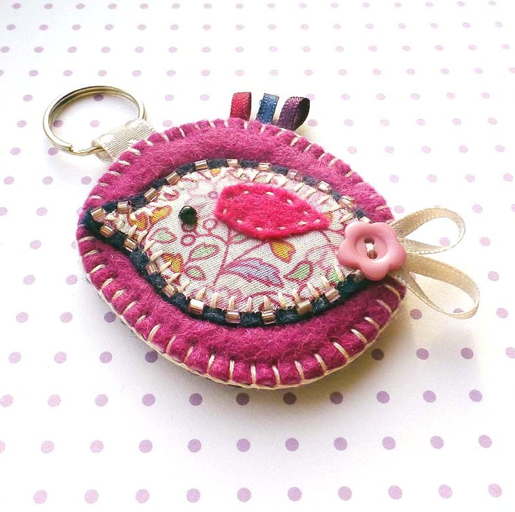 This is a hand stitched felt bird keyring... handbag charm.