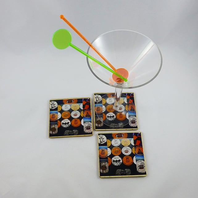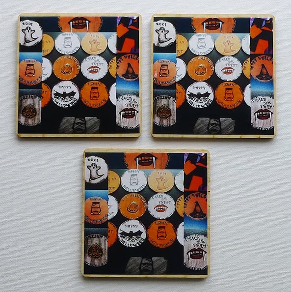 Celebrate the Halloween holiday in style while also protecting your furniture with this set of three handmade Halloween Coasters.