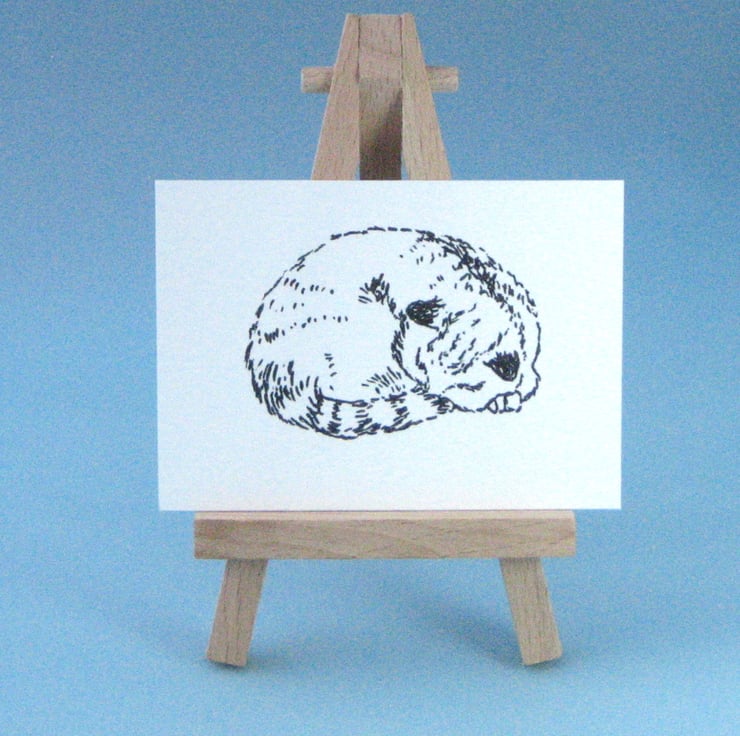 ACEO drawing of a sleeping cat in ink on watercolour paper. 2.5 x 3.5, collectable art.
