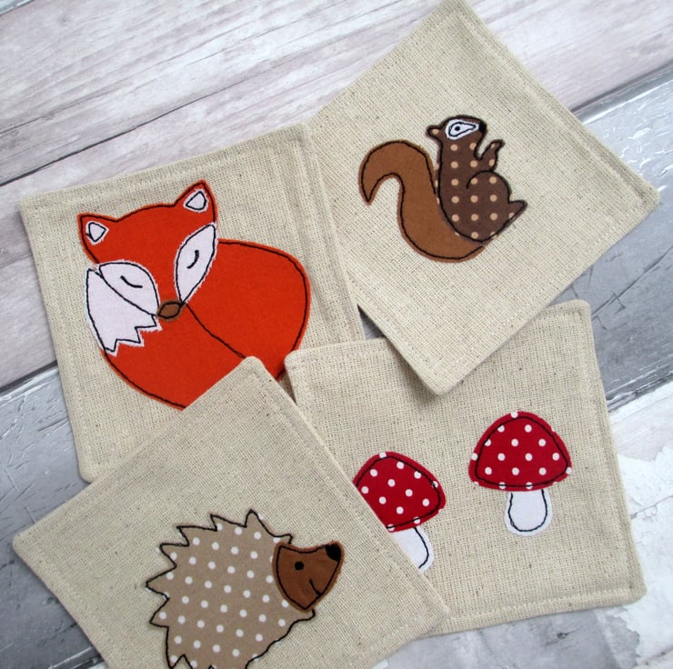A set of 4 fabric coasters with a woodland theme which are perfect for the autumn!
