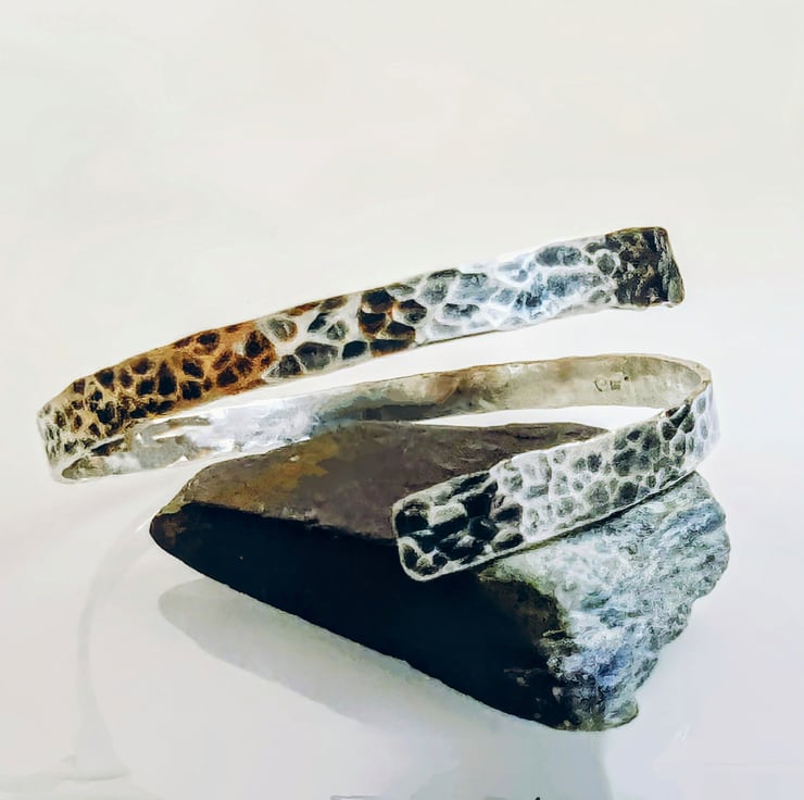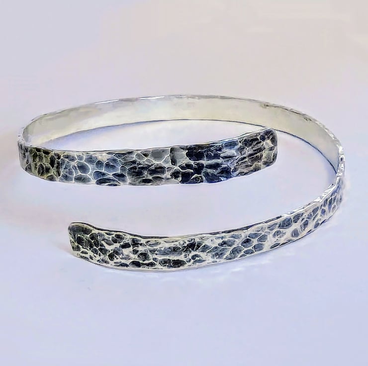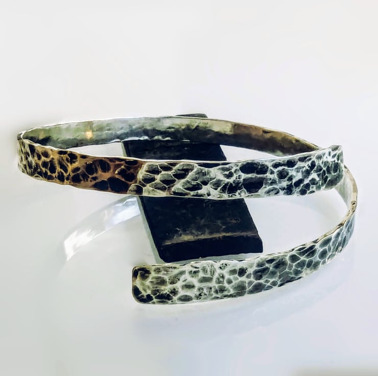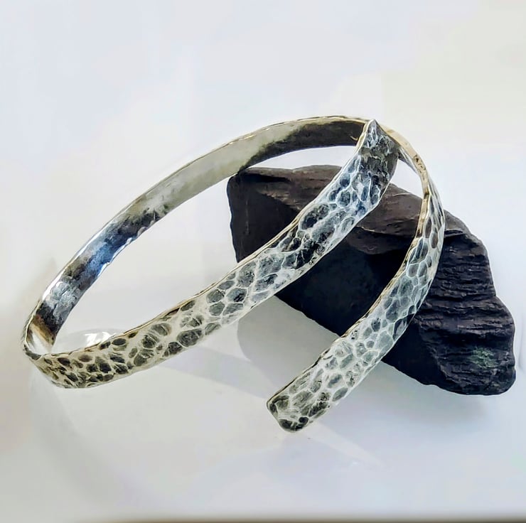Hammered open sterling silver bangle with a patina (darkened sterling silver)