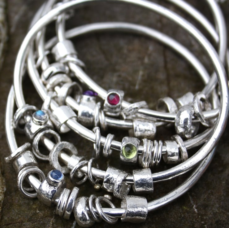 The bangle and beads have been burnished to a bright finish.