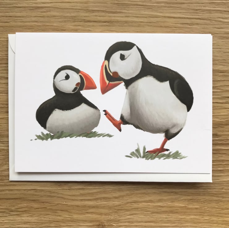 A lovely Puffins blank greeting card with white envelope by DuffleCat Prints (Damian Case)