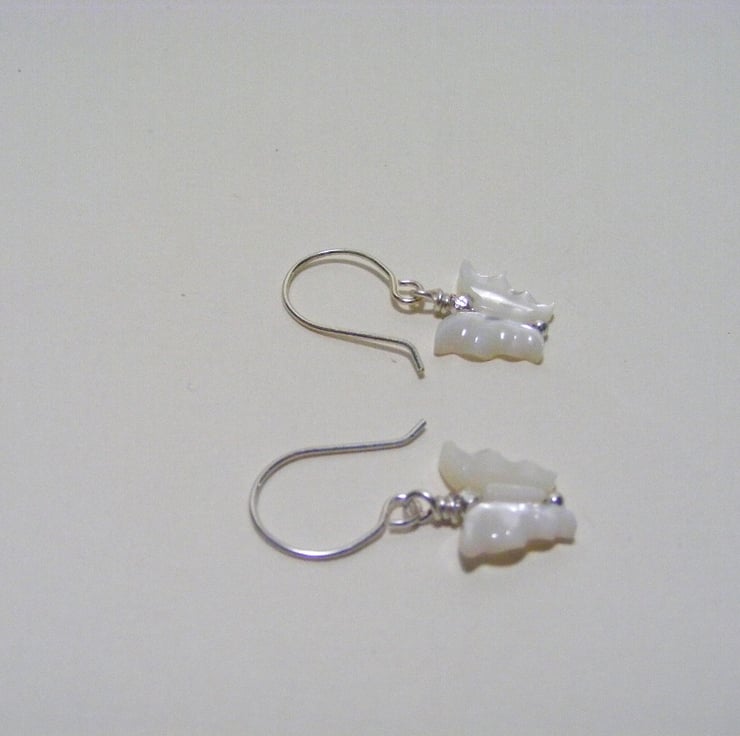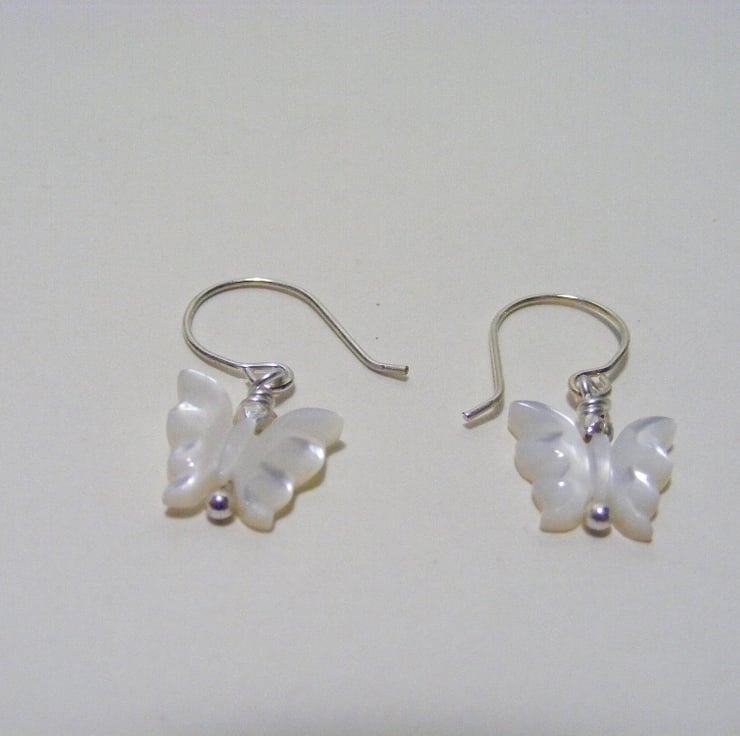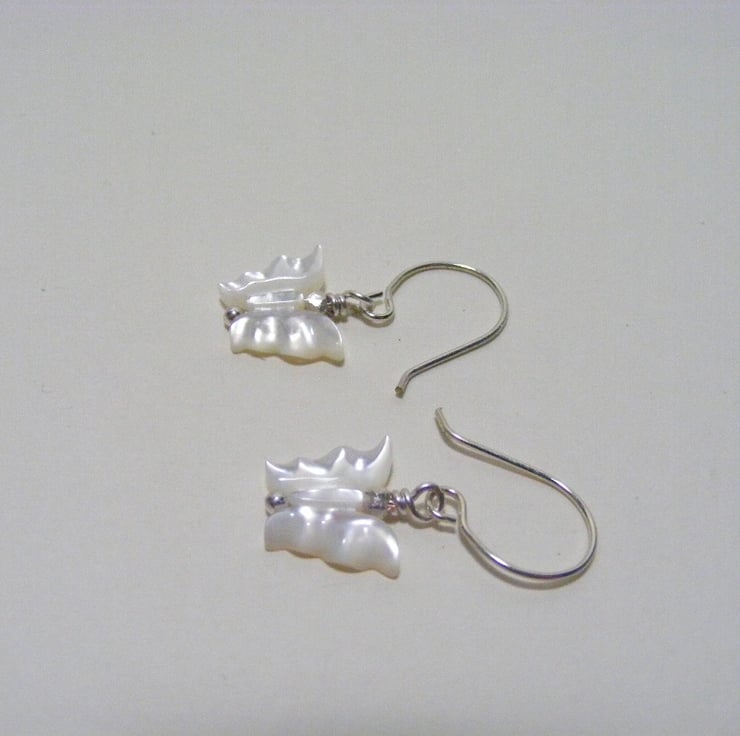 I have made these beautiful earrings by threading 13 x 10 mm white shell butterflies onto silver plated ball headpins and wrapping remaining wire.