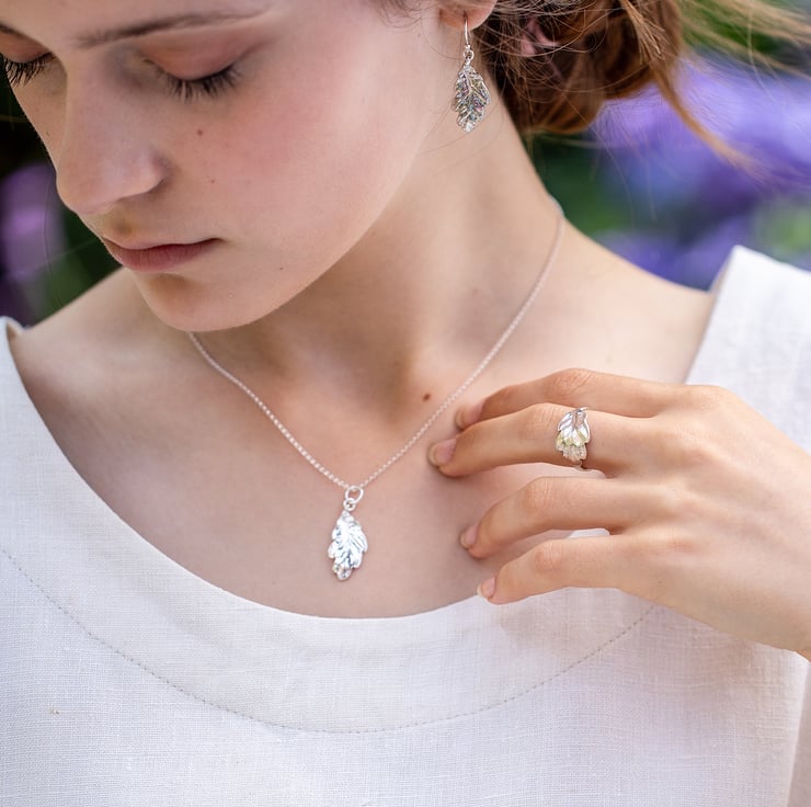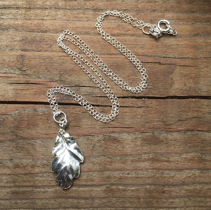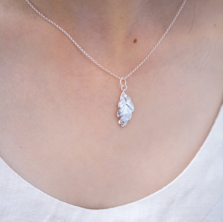 The silver leaf has been cast from a real oak leaf into solid sterling silver