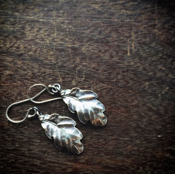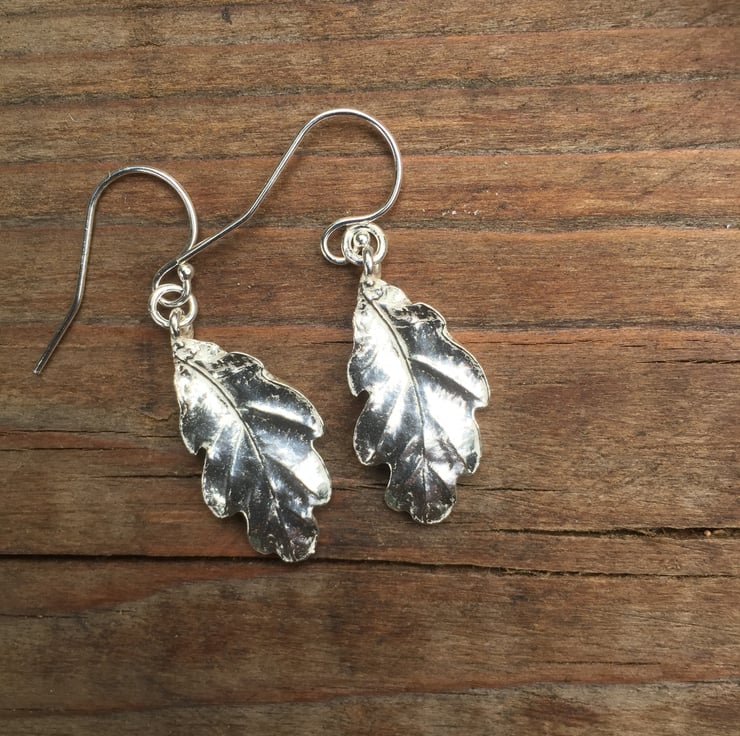 Gorgeous sterling silver oak leaf earrings with all the shapes and lines captured.