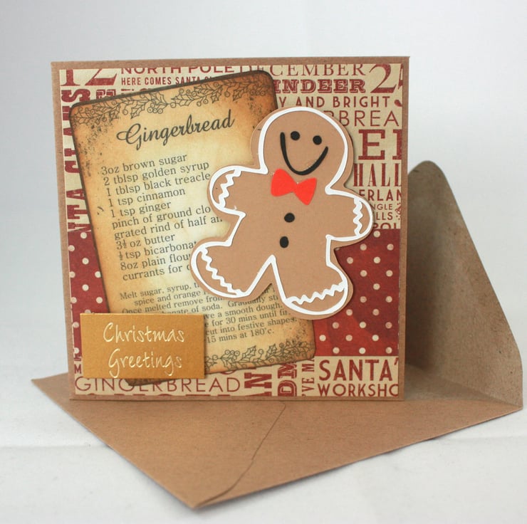 Each gingerbread man has been assembled by hand, so no two are exactly the same. The recipe cards have been coloured using distress inks.