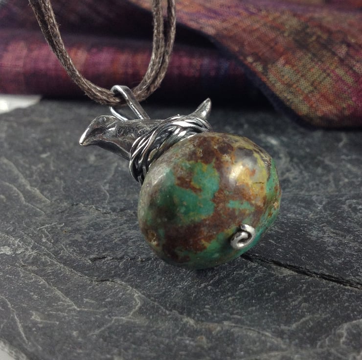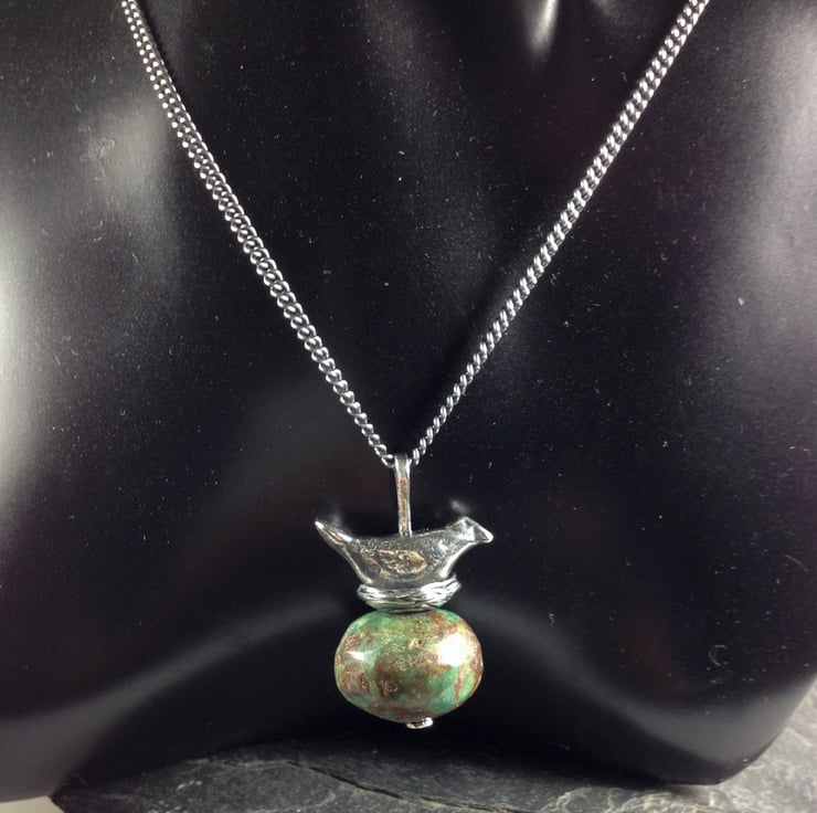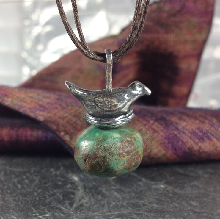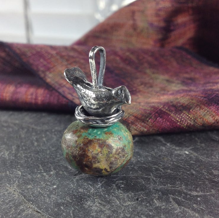 Nesting bird and old turquoise large quirky pendant.