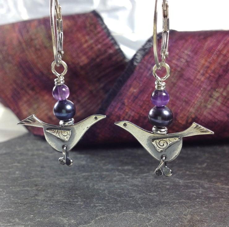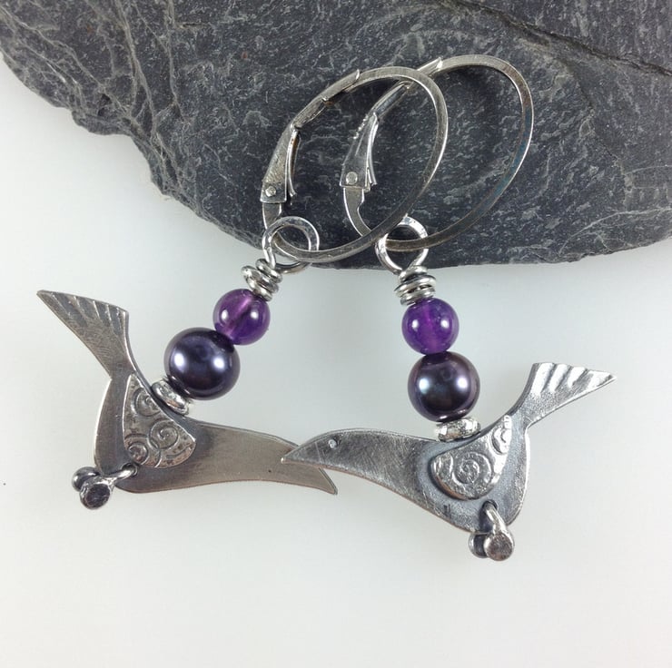 I have topped them with purply dark freshwater pearls and amethysts. You can have them leverback hoops or handmade hooks. If no preference is stated I will send hoops.