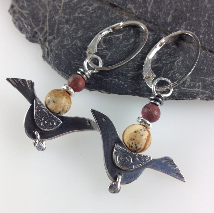 I have made some small silver birds with swirly wings and moving legs. The silver has been oxidised dark in the recesses .