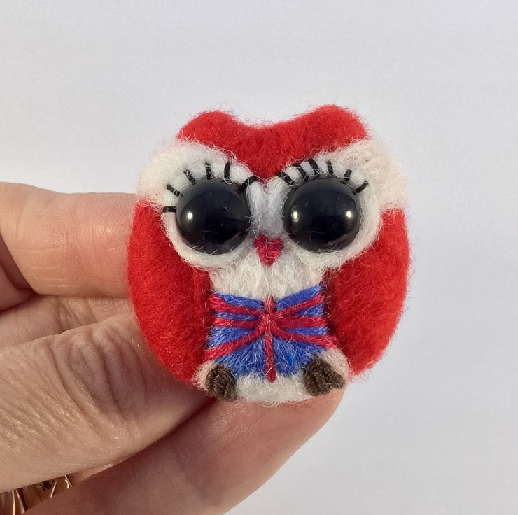 A very patriotic owl, Olivia would love to land on your jacket or scarf and cheer you up. She has hand embroidered details, a Union Jack tummy, and gorgeous eyelashes!