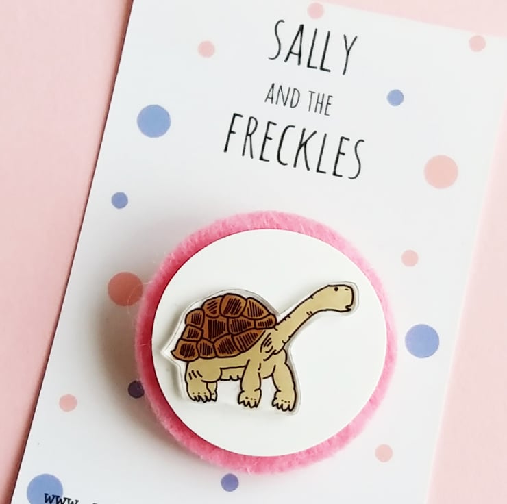 The brooch is made from layers of shrink plastic and felt with a safety brooch back. The image has been hand painted.